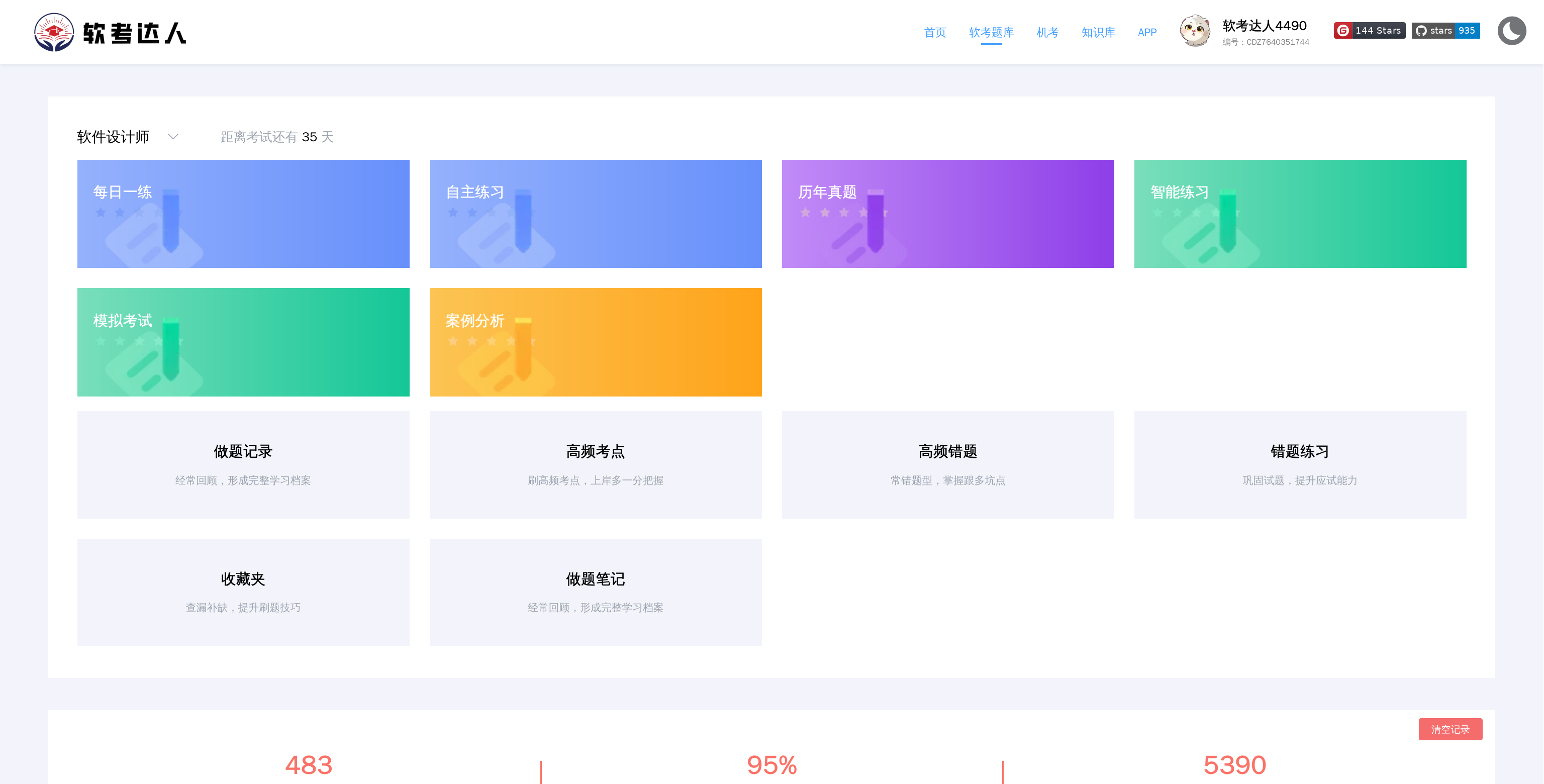 一个不错的软考学习网站,可以在线练习历年真题、模拟考试、每日一练。,还支持小程序和手机App端。笔者靠着这个网站通过了软考中级的软件设计师,刷题体验相当不错👍,值得推荐。