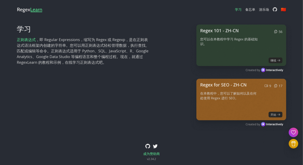 想要学习正则表达式吗?还在看枯燥的教程和示例吗?那么这个在线正则表达式学习网站非常适合你。边学边练,实时看到结果,像打怪升级一样不断完成挑战,比传统教程更生动有趣。