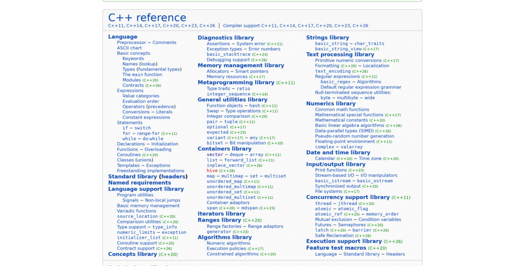 还在百度查找c/c++的语言特性,饱受过时的信息干扰和在csdn里屎里淘金吗?有了下面的c/c++权威参考网站,c/c++的各种关键字用法、标准、特性、标准库函数的用法等等一网打尽,c/c++开发学习必备。不过对英语水平有一定要求。
