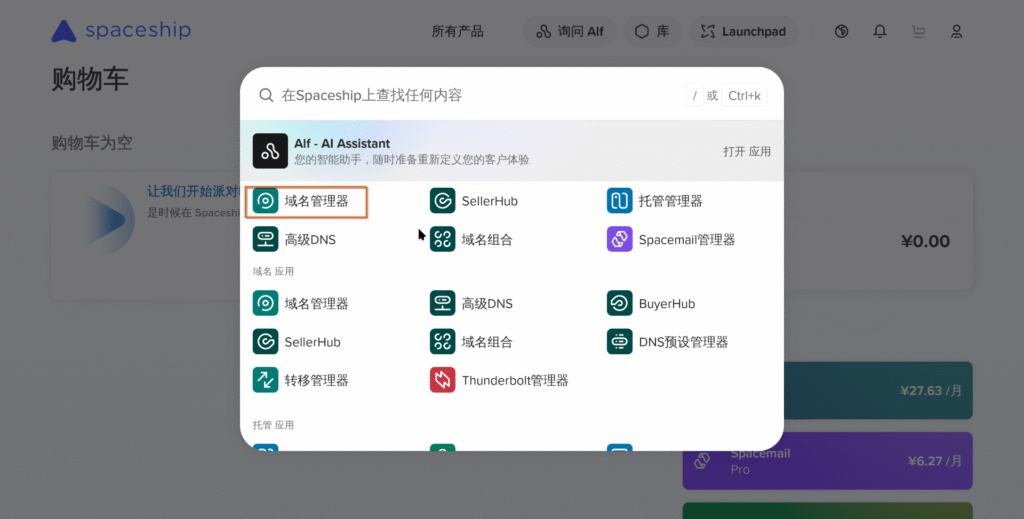 点击launchpad,选择域名管理器: